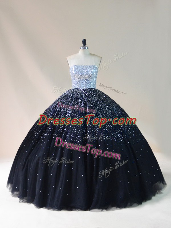 Black Sleeveless Beading Floor Length Sweet 16 Quinceanera Dress