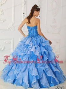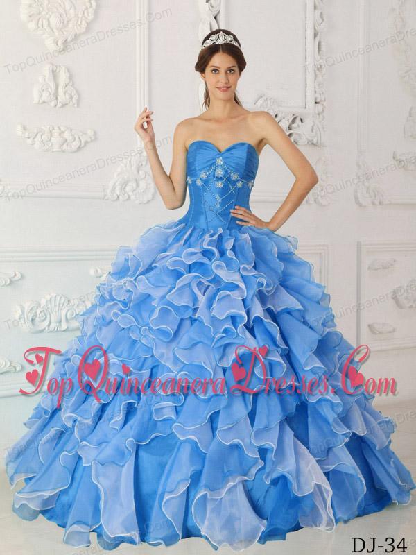 Blue A-Line / Princess Sweetheart Floor-length Taffeta and Organza Beading Quinceanera Dress