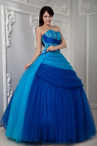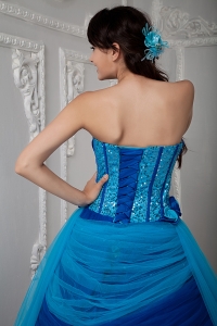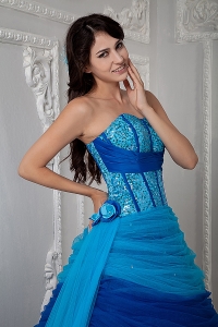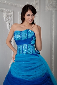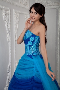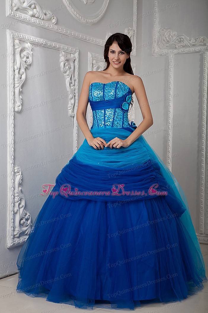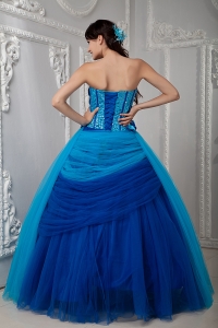 Blue A-line Quinceanea Dress Sweetheart SequinTulle Ruch