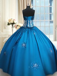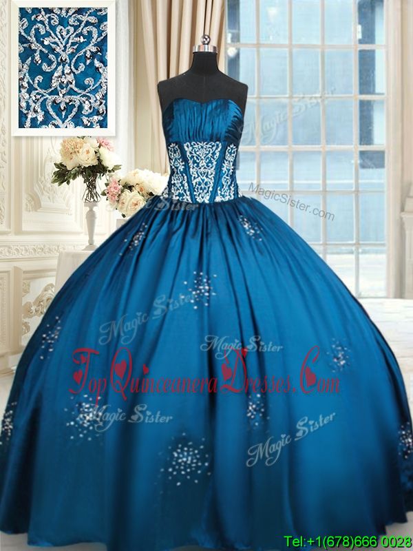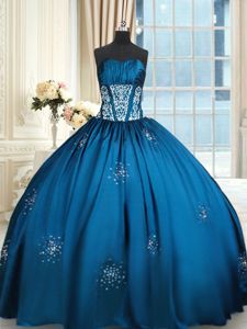 Blue and Teal Lace Up Strapless Beading and Appliques and Ruching Sweet 16 Quinceanera Dress Taffeta Sleeveless
