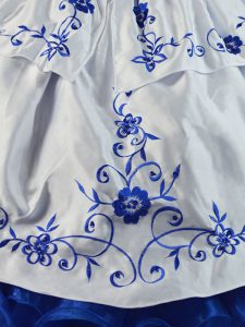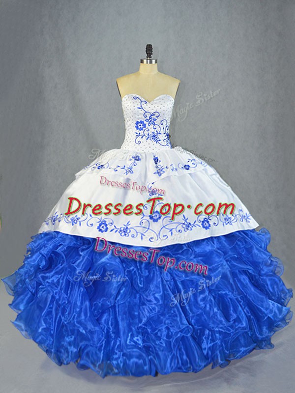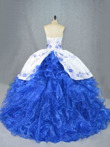Blue And White Quinceanera Dresses Organza Brush Train Sleeveless Beading and Embroidery and Ruffles