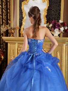 2014 perfect blue prom gown for military ball, Blue Appliques Quinceanera Dress Sweetheart Organza