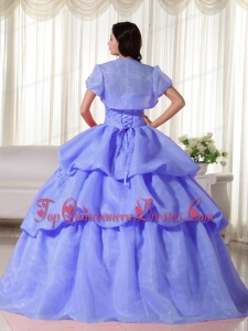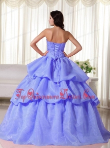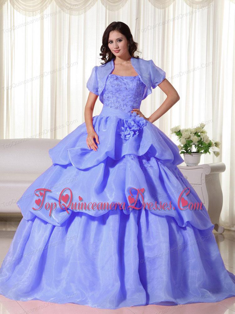 Blue Ball Gown Strapless Floor-length Organza Hand Flowers Unique Quinceanera Dress