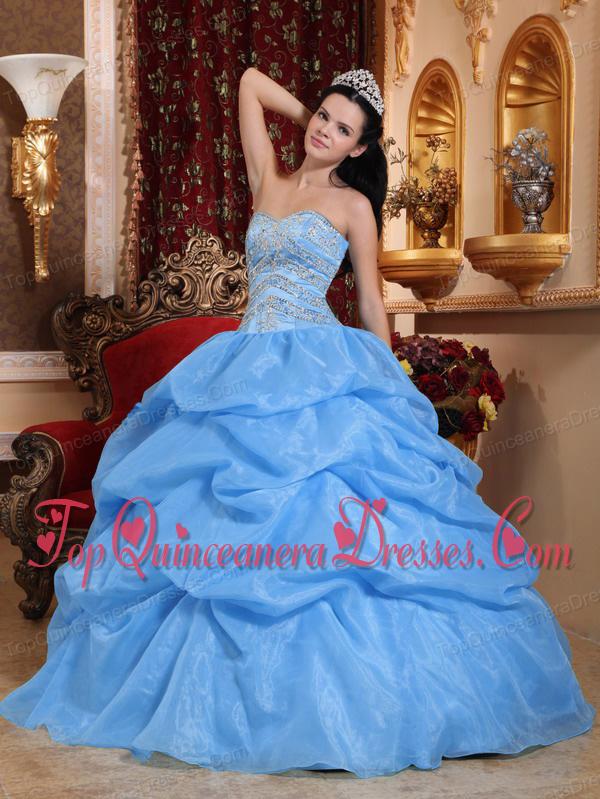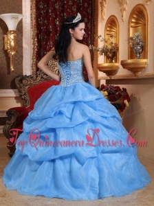 Blue Ball Gown Sweetheart Floor-length Organza Beading Quinceanera Dress
