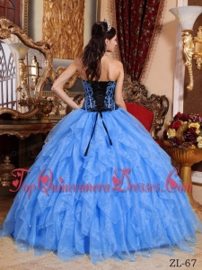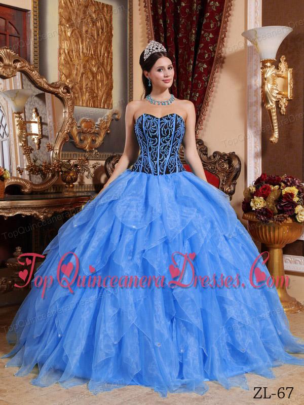 Blue Ball Gown Sweetheart Floor-length Organza Embroidery with Beading Quinceanera Dress