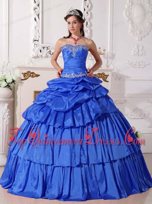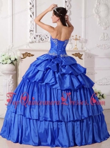 Blue Ball Gown Sweetheart Floor-length Taffeta Beading and Ruch Detachable Quinceanera Dress