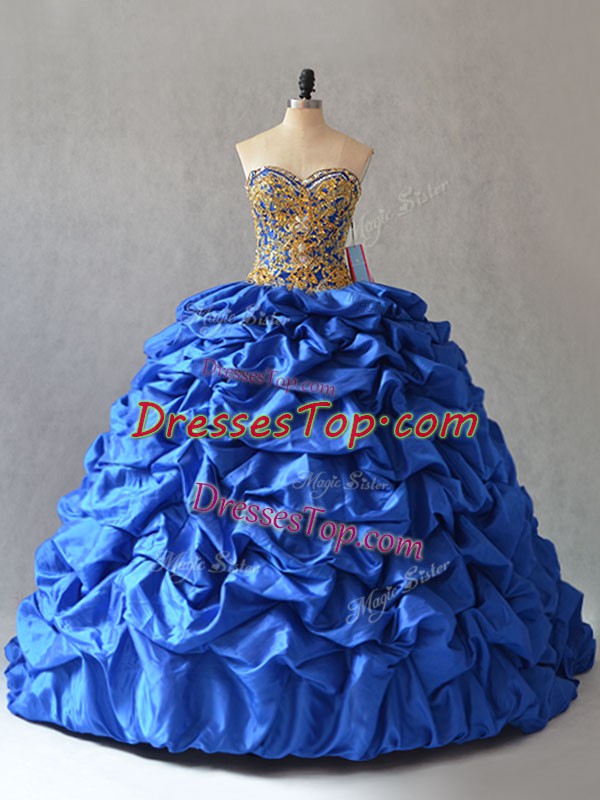 Blue Ball Gowns Beading and Pick Ups 15 Quinceanera Dress Lace Up Taffeta Sleeveless