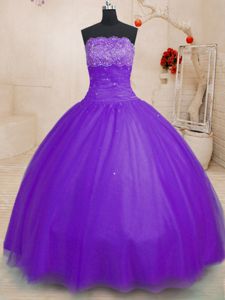 Blue Ball Gowns Beading and Ruffles Ball Gown Prom Dress Zipper Organza Sleeveless Floor Length
