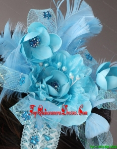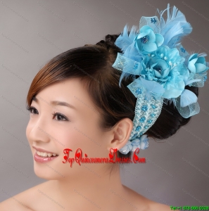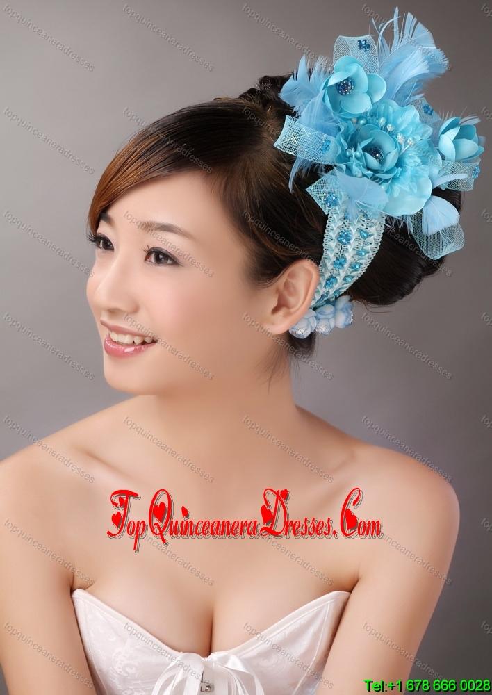 Blue Feather Chiffon Net Flower For Party