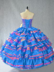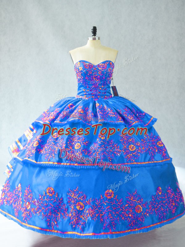 Blue Lace Up Quince Ball Gowns Embroidery Sleeveless Floor Length