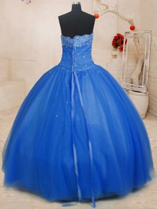 Blue Lace Up Quinceanera Gowns Beading Sleeveless Floor Length