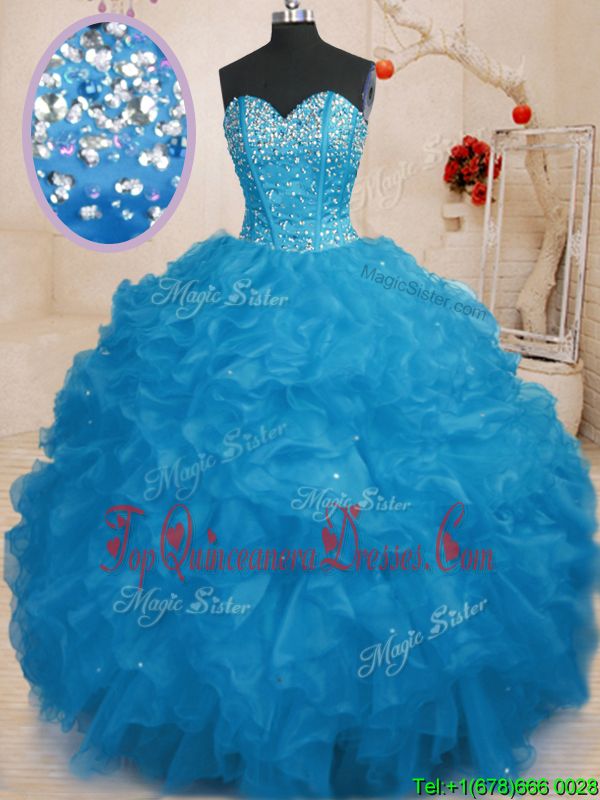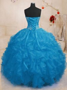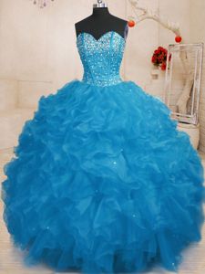 Blue Lace Up Sweet 16 Dresses Beading and Ruffles Sleeveless Floor Length