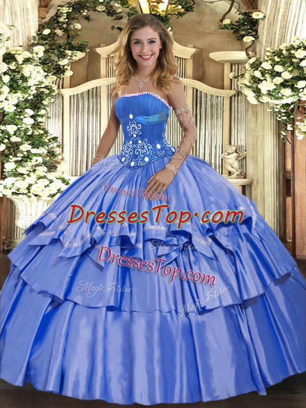 Blue Organza and Taffeta Lace Up Sweet 16 Quinceanera Dress Sleeveless Floor Length Beading and Ruffled Layers