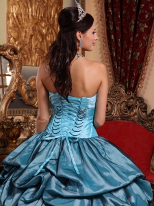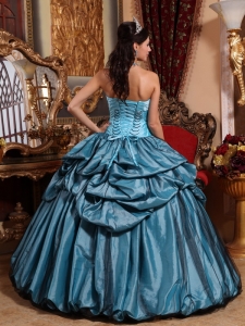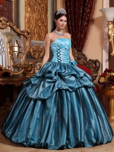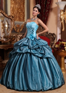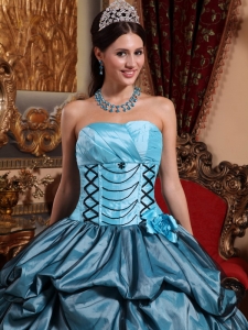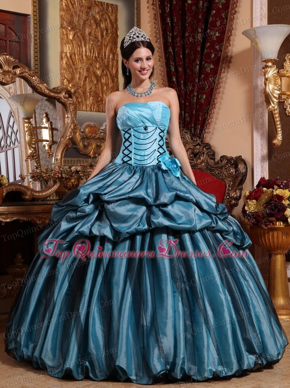 Blue Quinceanera Dress Strapless Taffeta Ruffles Floral Sweet 16