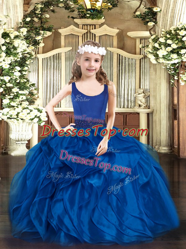 Blue Scoop Zipper Beading and Ruffles Pageant Dress for Teens Sleeveless