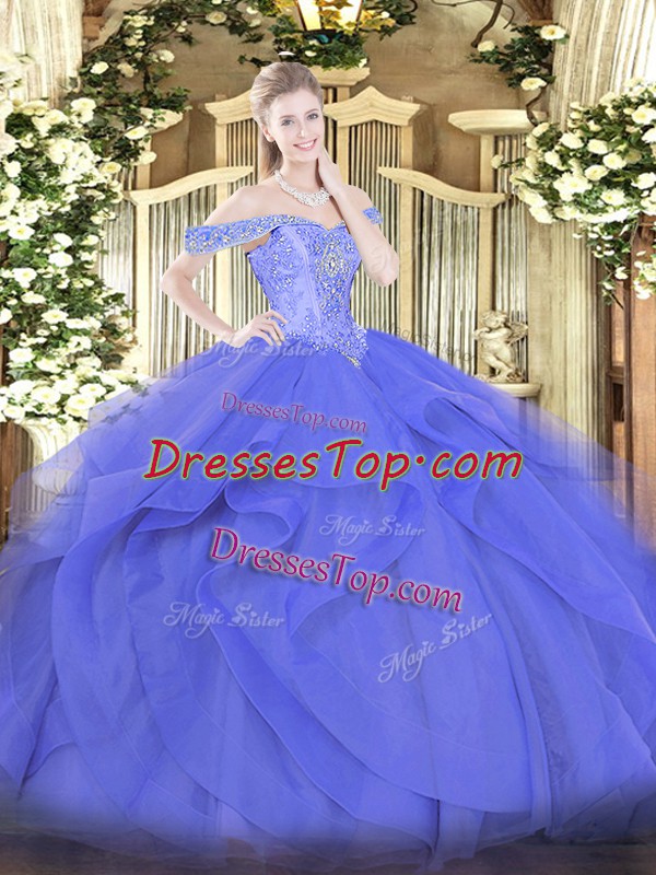 Blue Sleeveless Beading and Ruffles Floor Length Quinceanera Dresses