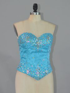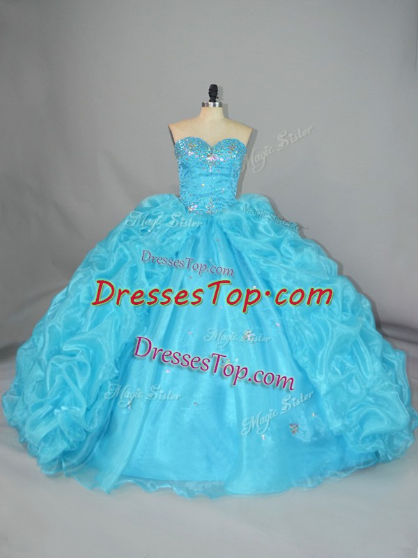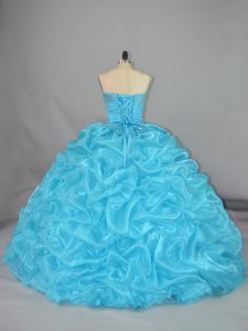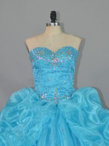 Blue Sleeveless Embroidery and Ruffles Floor Length 15th Birthday Dress