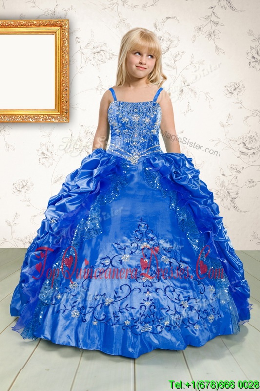 Blue Sleeveless Floor Length Beading and Appliques and Pick Ups Lace Up Little Girls Pageant Dress