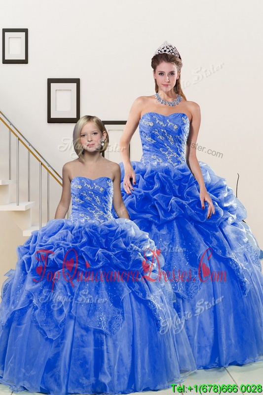 Blue Sleeveless Floor Length Beading and Pick Ups Lace Up Quince Ball Gowns