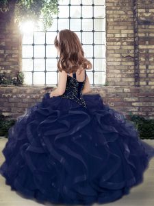 Blue Sleeveless Floor Length Beading and Ruffles Lace Up Child Pageant Dress