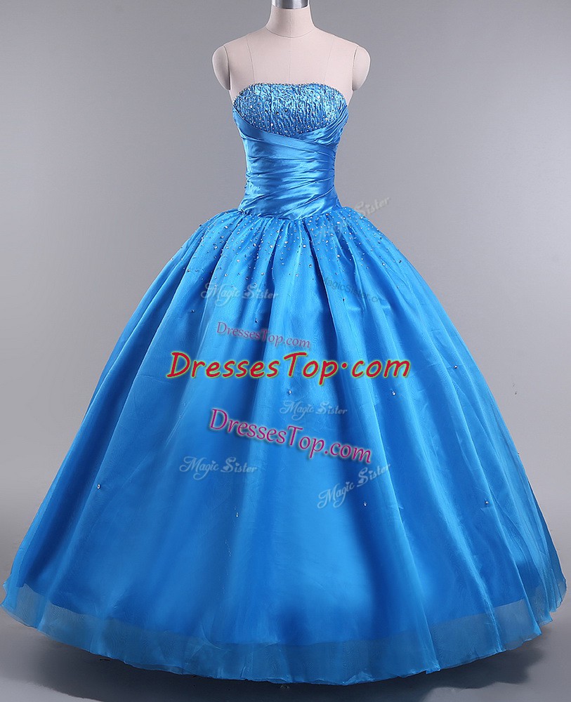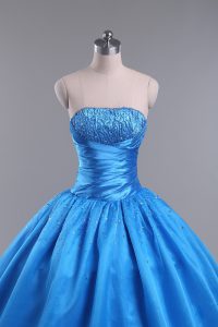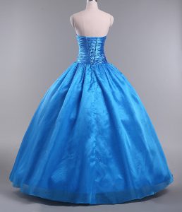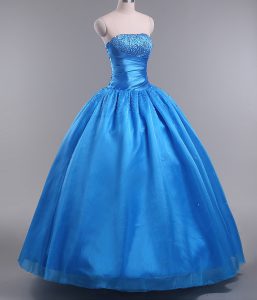 Blue Sleeveless Floor Length Beading Lace Up 15th Birthday Dress