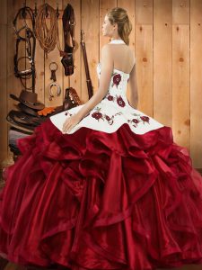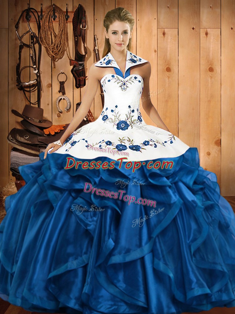 Blue Sleeveless Satin and Organza Lace Up Quince Ball Gowns for Military Ball and Sweet 16 and Quinceanera