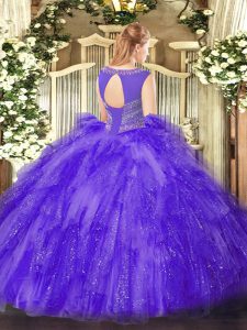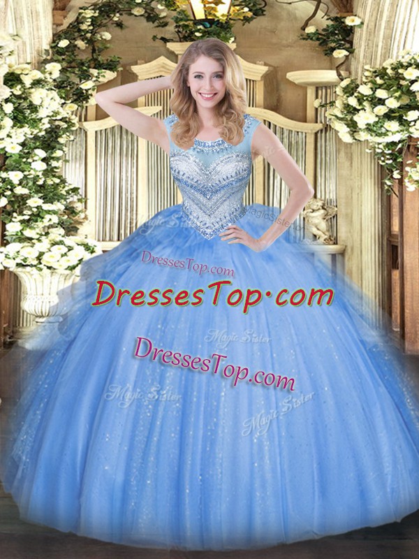 Blue Sleeveless Tulle Lace Up Quince Ball Gowns for Sweet 16 and Quinceanera