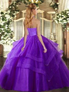 Blue Sleeveless Tulle Lace Up Sweet 16 Quinceanera Dress for Military Ball and Sweet 16 and Quinceanera