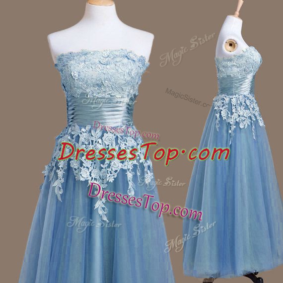 Blue Sleeveless Tulle Lace Up Vestidos de Damas for Prom and Party and Wedding Party