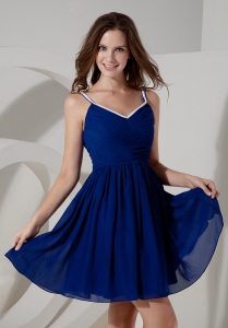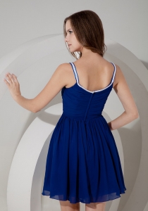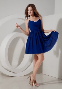 Blue Spaghetti Straps Mini-length Chiffon Ruch Damas Dresses