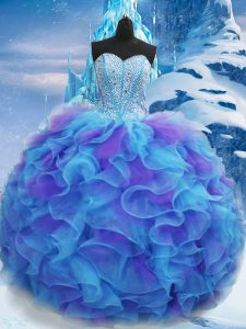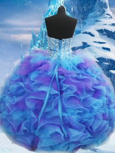 Blue Sweet 16 Quinceanera Dress Military Ball and Sweet 16 and Quinceanera with Beading and Ruffles Sweetheart Sleeveless Lace Up