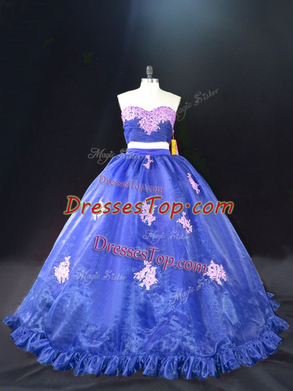 Blue Sweet 16 Quinceanera Dress Sweetheart Sleeveless Brush Train Zipper
