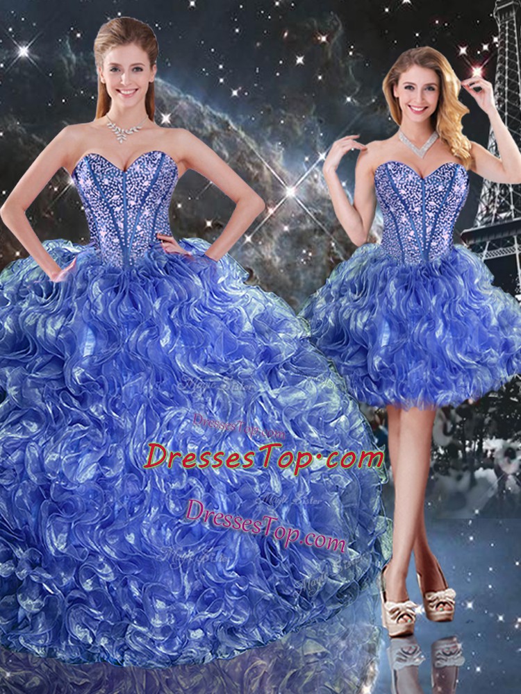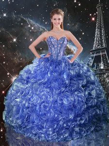 Blue Sweetheart Lace Up Beading and Ruffles Sweet 16 Quinceanera Dress Sleeveless