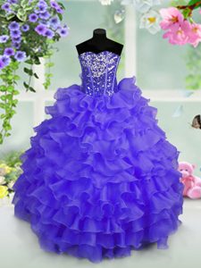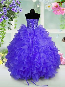 Blue Sweetheart Neckline Ruffled Layers and Sequins Pageant Dresses Sleeveless Lace Up