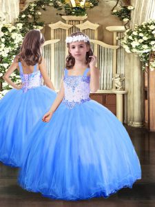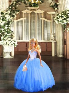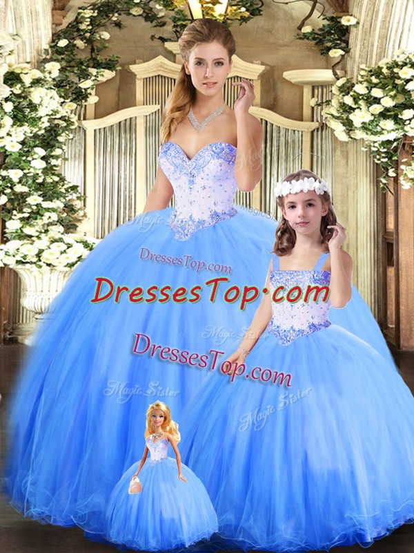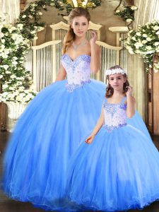 Blue Tulle Lace Up Sweetheart Sleeveless Floor Length Quinceanera Gown Beading