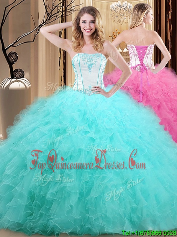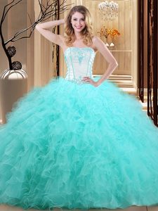 Blue Vestidos de Quinceanera Military Ball and Sweet 16 and Quinceanera and For with Embroidery Strapless Sleeveless Lace Up