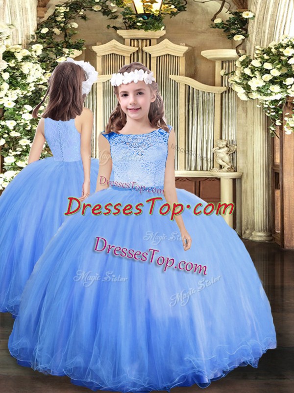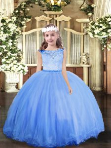 Blue Zipper Scoop Lace Girls Pageant Dresses Tulle Sleeveless