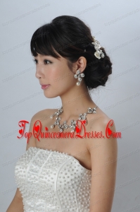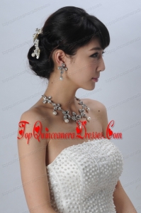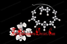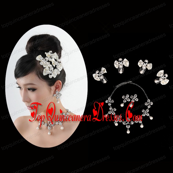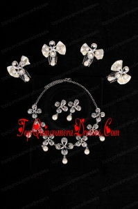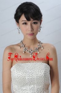 Bowknot Pearl and Rhinestone Necklace Earring Jewelry Set