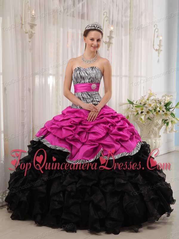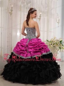 Brand New Hot Pink and Black Ball Gown Sweetheart Floor-length Fashionable Quinceanera Dress