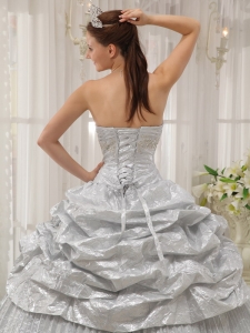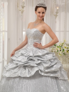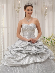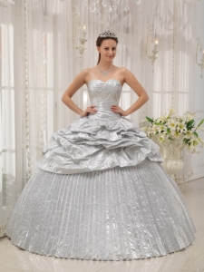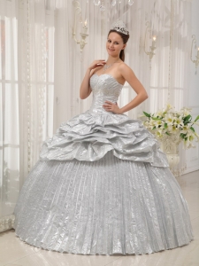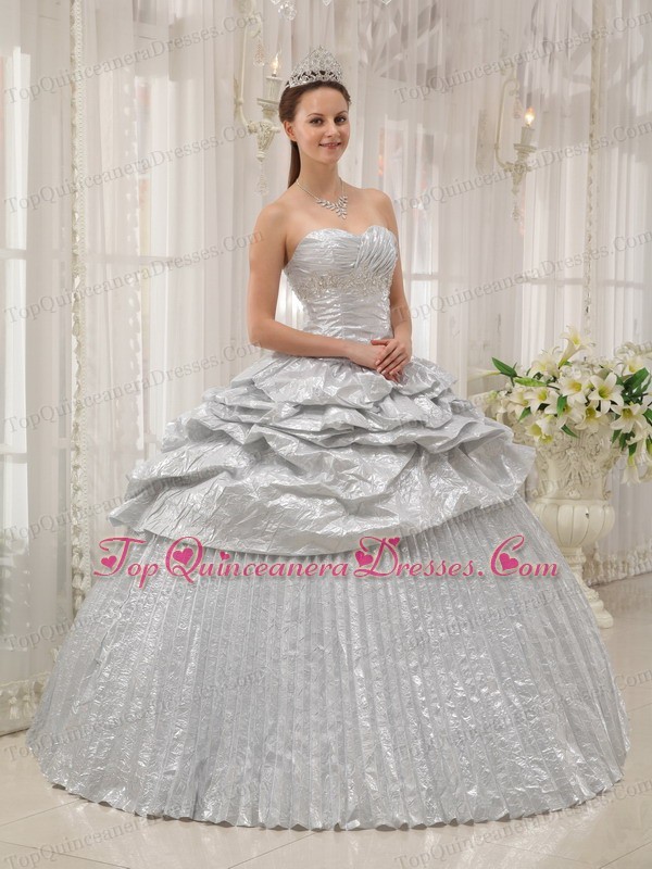 Brand New Pleated Silver Quinceanera Dress Sweetheart