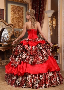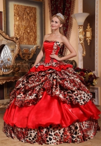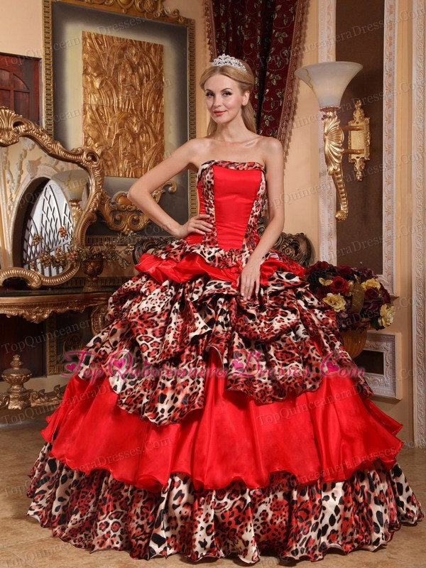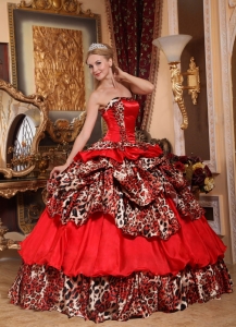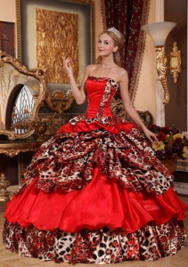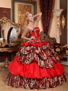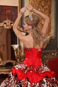 Brand New Red Quinceanera Dress Leopard Pick-ups Layers