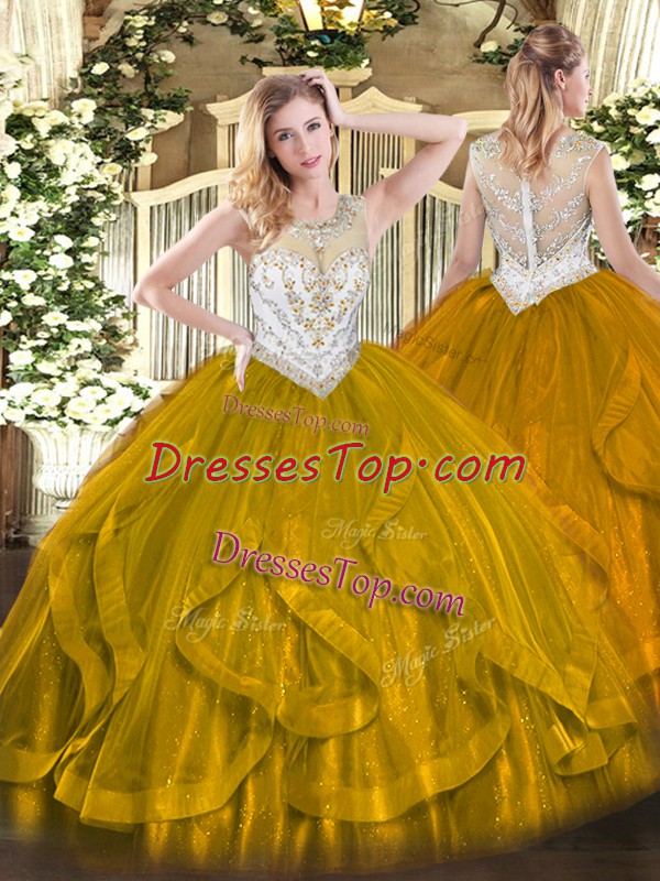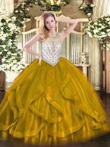 Brown Ball Gowns Beading and Ruffles Sweet 16 Quinceanera Dress Zipper Tulle Sleeveless Floor Length