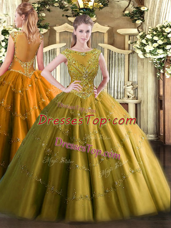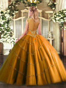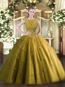 Brown Ball Gowns Tulle Scoop Sleeveless Beading and Appliques Floor Length Zipper Quinceanera Dresses