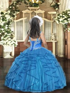 Brown Lace Up Little Girls Pageant Dress Beading and Ruffles Sleeveless Floor Length