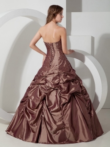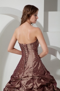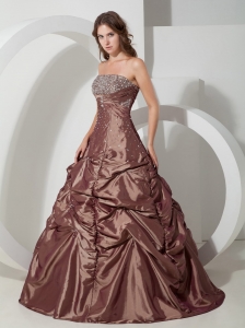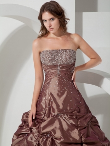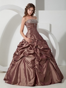 Brown Pick-ups Quinceanera Dress Strapless Taffeta Beading