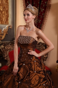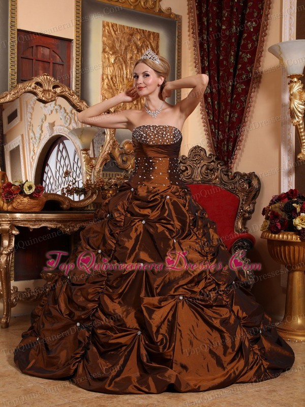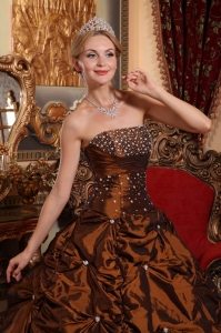 Brown Quinceanera Dress Strapless 2013 Beading A-line