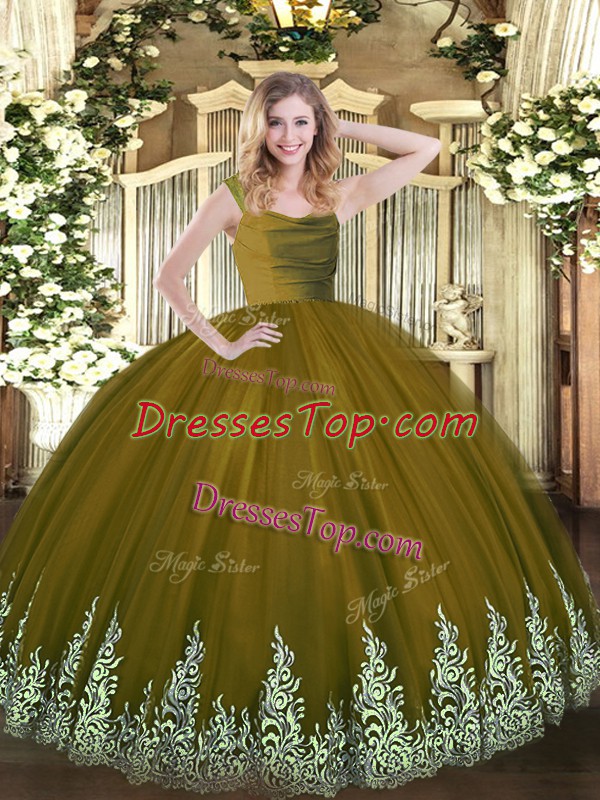 Brown Sleeveless Lace and Appliques Floor Length Sweet 16 Quinceanera Dress