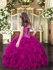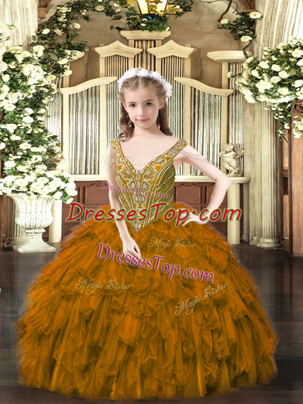 Brown Sleeveless Organza Lace Up Child Pageant Dress for Party and Quinceanera