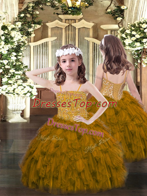 Brown Sleeveless Organza Lace Up Pageant Gowns for Party and Quinceanera
