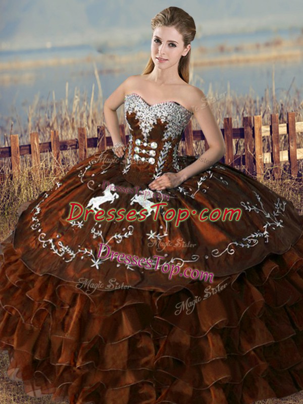 Brown Sleeveless Satin and Organza Lace Up Vestidos de Quinceanera for Sweet 16 and Quinceanera